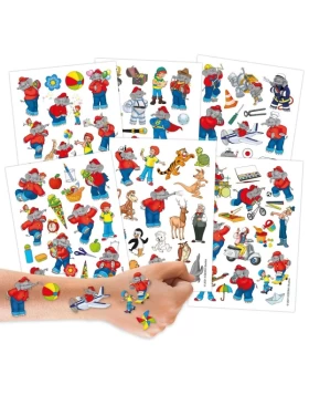 10 verschiedene Tiere: Eichhörnchen, Hase, Pinguin, Igel, Goldfisch, Nashorn, Katze, Hahn, Elefant, Dino