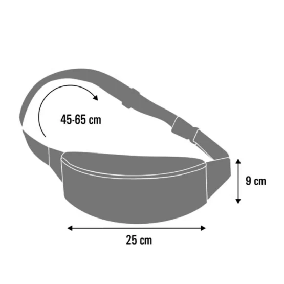 Τσαντάκι μέσης σε καμβά cordura . Πολύ πρακτικό, λειτουργικό και εξαιρετικά άνετο, για να φοριέται γύρω από τη μέση ή στον ώμο. Διαθέτει δύο θήκες που κλείνουν με φερμουάρ .Ρυθμιζόμενη πάνινη ζώνη 45-65 cm .