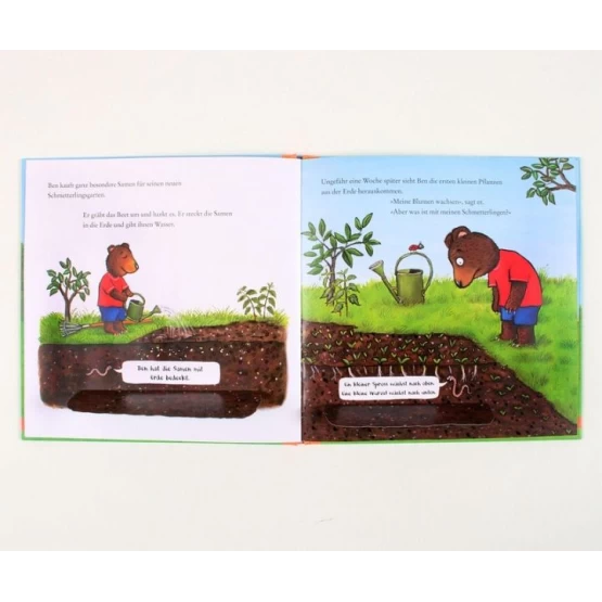 Ben möchte unbedingt einen Blumengarten für Schmetterlinge! Er kann es kaum erwarten, bis aus den Samen bunte Blumen und aus den Raupen wunderschöne Schmetterlinge werden, die zu seiner Schmetterlingswiese flattern. Was für eine Überraschung!Ein außergewöhnliches Pflanzen-Bilderbuch von einem der beliebtesten Illustratoren. Mit 4 Klappen, hinter denen sich Ratschläge von Regenwurm & Marienkäfer verstecken, und einem tollen Pop-up-Bild.