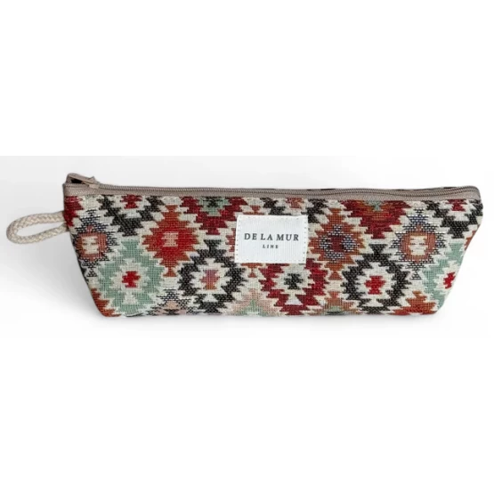 Κασετίνα με φερμουάρ πολύχρωμα γεωμετρικά σχέδια. Μπορεί να υπάρχουν μικρές αποκλίσεις στο σχέδιο, ανάλογα με το κόψιμο. Εσωτερικά με χοντρό, γκρι ύφασμα.
