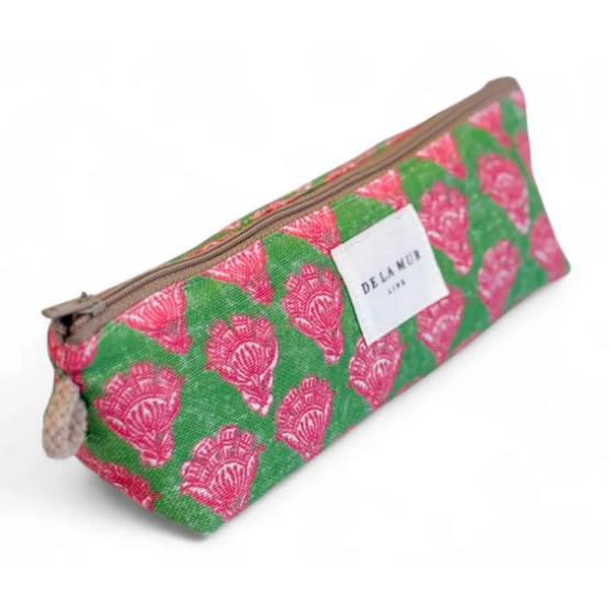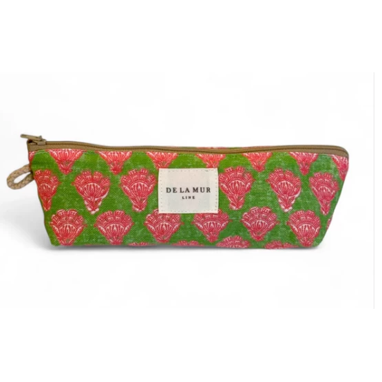 Θήκη με φερμουάρ στο πάνω μέρος. Με λεπτό ύφασμα με φλοράλ τύπωμα σε μαύρους και μπεζ τόνους. Κάθε κομμάτι μπορεί να έχει μια παραλλαγή στην εκτύπωση, ανάλογα με το πού κόπηκε το κομμάτι. Εσωτερικά επενδυμένο με χοντρό γκρι ύφασμα. Για σωστή συντήρηση, συνιστάται να το πλένετε στο χέρι με κρύο νερό και να μην χρησιμοποιείτε στεγνωτήριο.