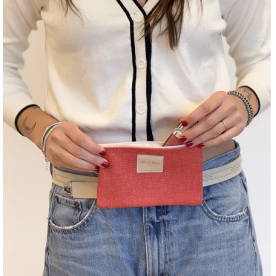 Πορτοφόλι με φερμουάρ στην επάνω πλευρά και μικρή λαβή από μπεζ κορδόνι στο πλάι. Κατασκευασμένο από πολύχρωμο ριγέ ύφασμα. Κάθε προϊόν μπορεί να έχει διαφορά στο μοτίβο, ανάλογα με το σημείο κοπής του υφάσματος. Εσωτερικά, είναι επενδεδυμένο με χοντρό γκρι ύφασμα. Για σωστή συντήρηση, συνιστάται πλύσιμο στο χέρι με κρύο νερό και αποφυγή χρήσης στεγνωτηρίου.