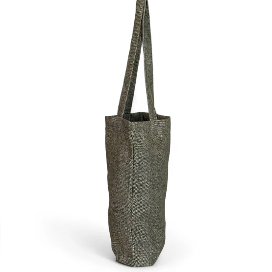Τσάντα Tote με λαβές για μεταφορά στον ώμο. Κατασκευασμένη από λεπτό ύφασμα με μοτίβο, σε σκούρο χακί χρώμα.