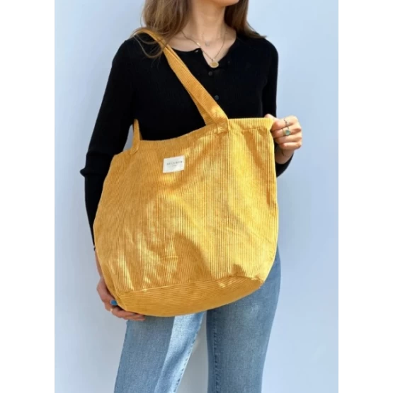 Ευρύχωρη υφασμάτινη τσάντα με χερούλια διπλής ραφής για εύκολη μεταφορά. Από απαλό, ανθεκτικό κοτλέ ύφασμα σε χρώμα ιδιαίτερα χαρούμενο που συνδυάζεται εύκολα.