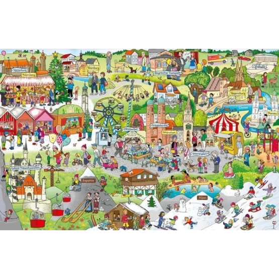 Mach dich bereit für eine aufregende Reise durch Deutschland! Finde berühmte Wahrzeichen, wie zum Beispiel das Brandenburger Tor oder das Schloss Neuschwanstein, und entdecke viele spannende Bräuche und die schöne Natur, die Deutschland so einzigartig machen.