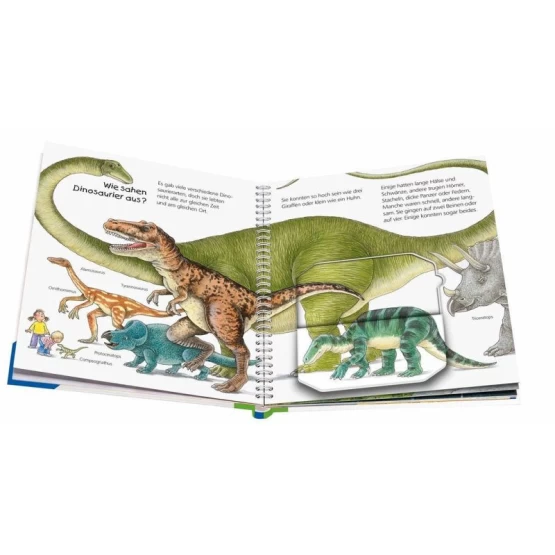 In diesem Buch wimmelt es von großen und kleinen Sauriern und spannenden Infos über die Urzeit. Mithilfe von Klappen schlüpft ein Dinobaby aus dem Ei, wehrt der Apatosaurus mit seinem Schwanz einen Angreifer ab und taucht der mächtige Plesiosaurus aus dem Ozean auf. Ein Buch, das kleine Dinofans ab 2 Jahren zum Staunen bringt.