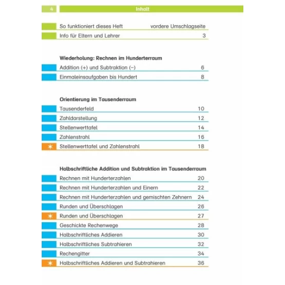 Orientieren im Zahlenraum bis 1000halbschrftliche und schriftliche Addition und Subtraktion sowie Multiplikation und Division im Tausenderraum