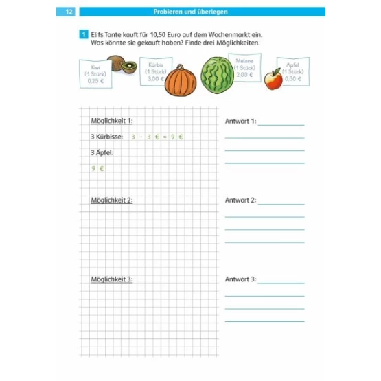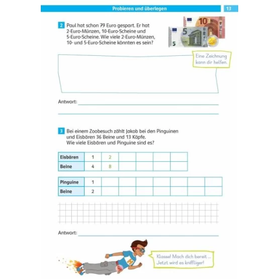 Verstehen der Aufgabentexte, effektive Lösungshilfen, Rechnen mit Größen, Daten, Häufigkeiten und Wahrscheinlichkeit sowie Raum und Form (Geometrie)Richtig viel üben, auch auf zwei Levels: Basis- und Forderseiten für individuellen Lernfortschritt.