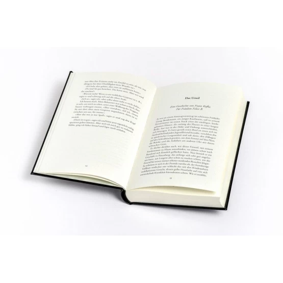 Gregor Samsa erwacht eines Morgens nicht mehr als Mensch, sondern als »ungeheures Ungeziefer«. In der »Strafkolonie« graviert ein rätselhafter Apparat den Verurteilten ihr Urteil grausam in die Haut. Im kurzen Text »Unglücklichsein« tritt an einem Novemberabend unerwartet ein Gespenst ins Zimmer, und über den jungen Kaufmann Georg Bendemann wird ein vernichtendes väterliches »Urteil« ausgeprochen. Im »Brief an den Vater« konfrontiert Kafka uns mit einer schonungslosen autobiografischen Selbst- und Vateranalyse. Kafka fasziniert wie kein anderer deutschsprachiger Autor der Weltliteratur bis heute. Dieser in Cabra-Leder gebundene Band mit geprägtem Cover enthält 14 Erzählungen und den berühmten Brief: