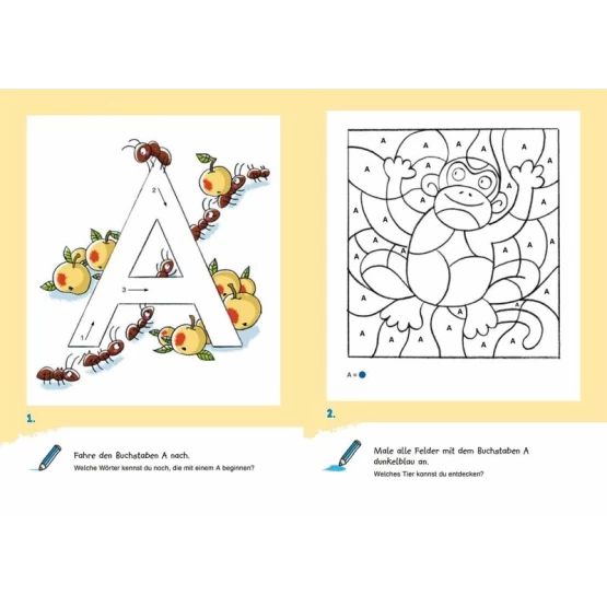 Lustiger Mal- und Rätselspaß für Vorschulkinder ab 4 Jahren zum ABC! Durch 66 abwechslungsreiche Rätsel- und Malaufgaben das Alphabet kennenlernen