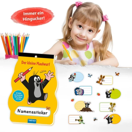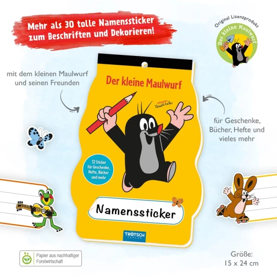 Αυτοκόλλητες ετικέτες για βιβλία και τετράδια. Το μπλοκ περιλαμβάνει 4 φύλλα με χαρούμενες αυτοκόλλητες ετικέτες από τη σειρά DER KLEINE MAULWURF