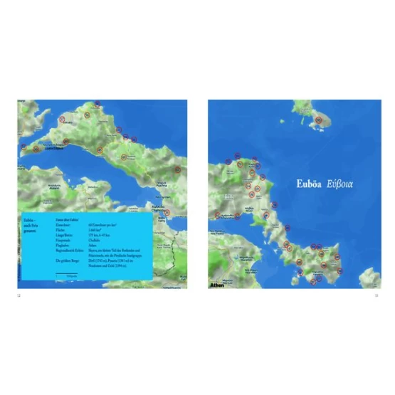 Euböa vom Norden nach Süden, vom Westen und Osten, incl. der dazugehörigen Bezirkinsel Skyros