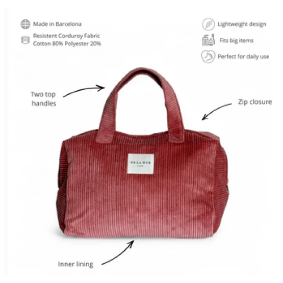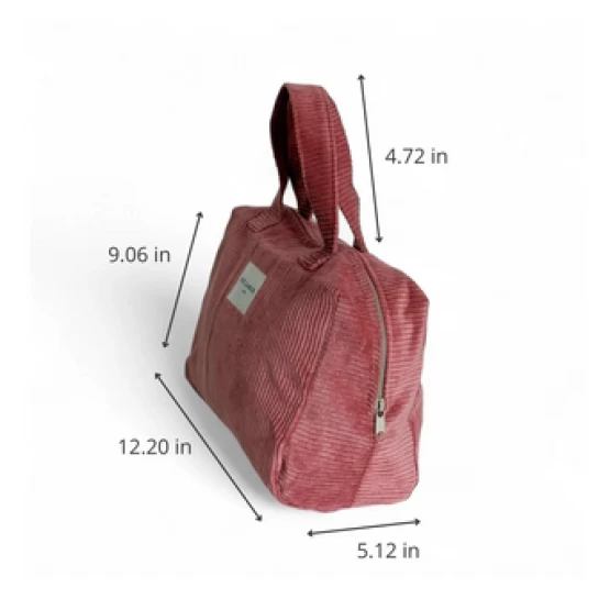 Spacious and practical, this coral corduroy extra-large pouch is perfect for carrying all your essentials. Made in Spain from thick, durable fabric with a soft lined interior, it features a secure top zipper and sturdy fabric handles—ideal for everyday use, travel, or transporting items with ease and style.