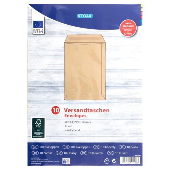 Η συσκευασία περιέχει 10 φακέλους, χρώμα καφέ, 229 Χ 324 mm. Nassklebende Versandumschläge in 10er Packung