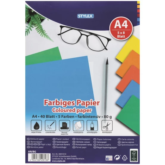 40 φύλλα χαρτιού σε 5 διαφορετικά χρώματα
