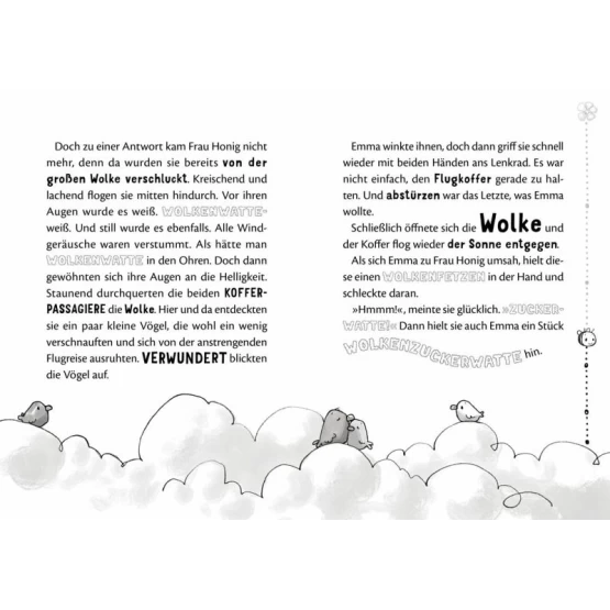 Kirschbaum steht auf Frau Honigs Zettel. Mehr nicht. Kein Weg, keine Allee, keine Straße - nur Kirschbaum. Doch dann stellt Frau Honig fest, dass da tatsächlich jemand wohnt. Die 9-jährige Emma. Sie ist von zu Hause ausgezogen. Jetzt wohnt sie im Kirschbaum im Garten. Daheim wurde zu viel gestritten. So zieht Frau Honig kurzerhand bei ihr ein. In den Ästen im zweiten Stock ist noch ein wenig Platz. Es dauert ein bisschen, bis Frau Honig das Vertrauen von Emma gewinnt. Und gemeinsam überlegen sie, was man alles mit streitenden Eltern machen könnte. Und Frau Honig wäre nicht Frau Honig, wenn sie nicht eine ganze Menge Ideen hätte.