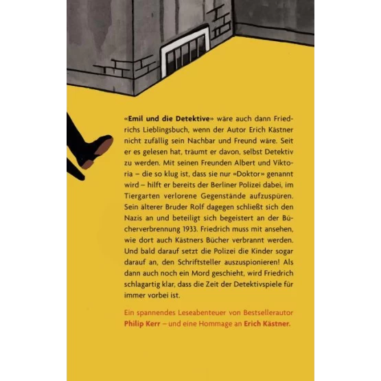 «Emil und die Detektive» wäre auch dann Friedrichs Lieblingsbuch, wenn der Autor Erich Kästner nicht zufällig sein Nachbar und Freund wäre. Seit er es gelesen hat, träumt er davon, selbst Detektiv zu werden. Mit seinen Freunden Albert und Viktoria - die so klug ist, dass sie nur «Doktor» genannt wird - hilft er bereits der Berliner Polizei dabei, im Tiergarten verlorene Gegenstände aufzuspüren. Sein älterer Bruder Rolf dagegen schließt sich den Nazis an und beteiligt sich begeistert an der Bücherverbrennung 1933. Friedrich muss mit ansehen, wie dort auch Kästners Bücher verbrannt werden. Und bald darauf setzt die Polizei die Kinder sogar darauf an, den Schriftsteller auszuspionieren! Als dann auch noch ein Mord geschieht, wird Friedrich schlagartig klar, dass die Zeit der Detektivspiele für immer vorbei ist.