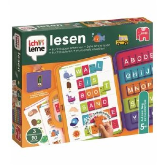 ich lerne lesen enthält 15 Karten mit 90 Übungen für 3 verschiedene Schwierigkeitsstufen: Nachlegen von Wörtern, finde den Anfangs-, Mittel- und Endbuchstaben, Buchstabieren von Wörtern. Das Spiel wird in einem praktischen Koffer verstaut. Ideal zum Mitnehmen. Mit 'ich lerne lesen' können Kinder zu Hause das üben, was Sie in Schule oder Kindergarten gelernt haben!