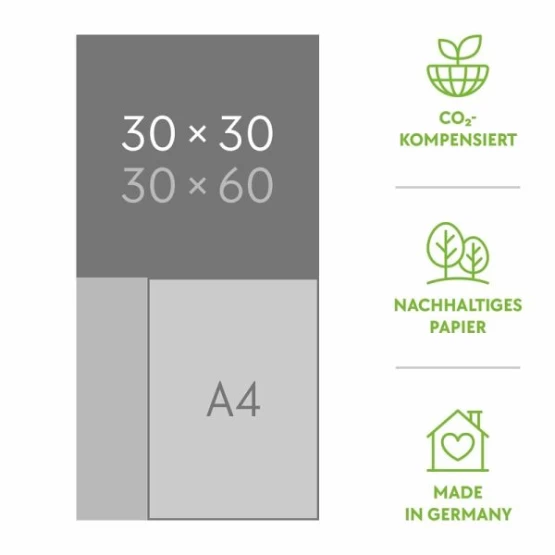 -Kalender im schlanken Hochformat: 30x30 cm, (aufgeklappt 30x60 cm)