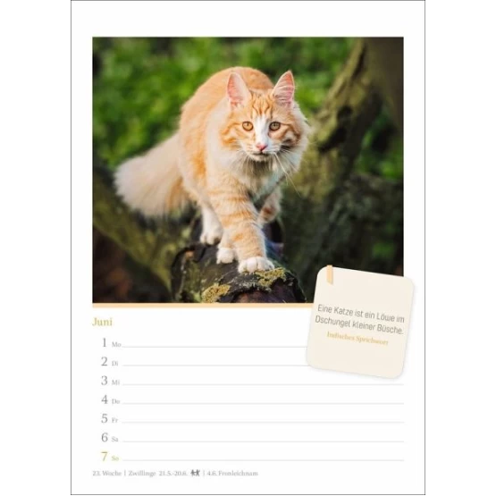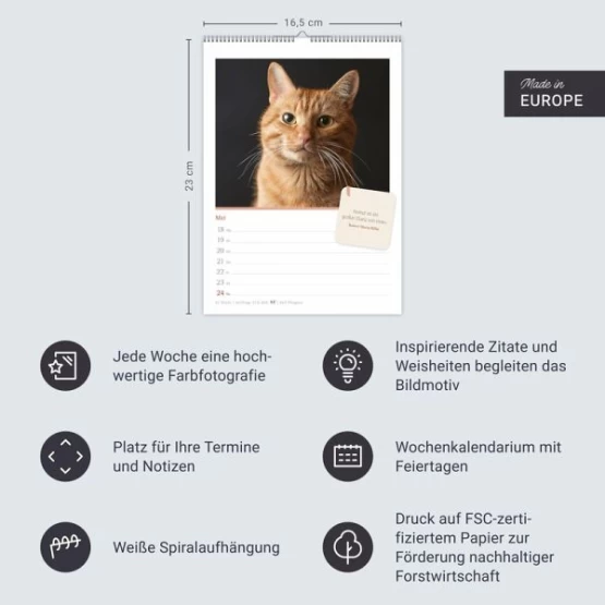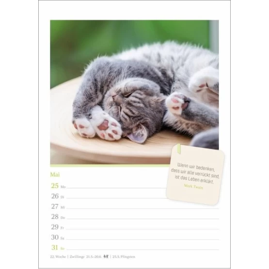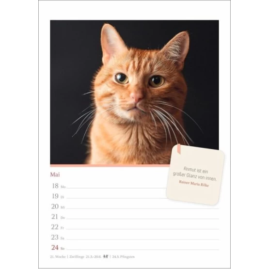 - Bühne frei für Samtpfoten jeder Couleur: Wochenplaner 2026 mit 53 hochwertigen Aufnahmen anmutiger Miezen und cooler Cats