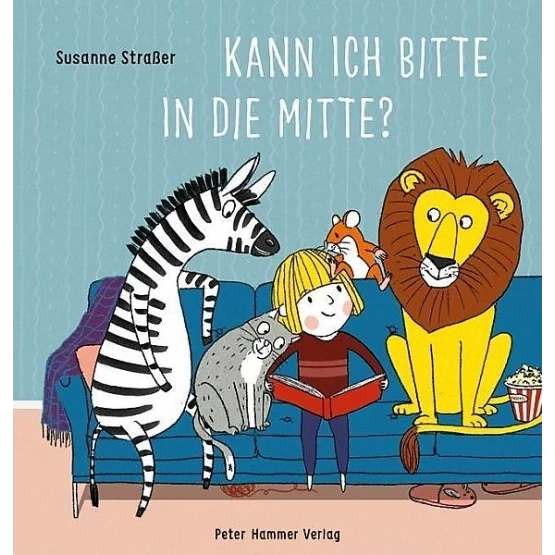 "Kommt, wir lesen ein Buch!", ruft das Kind und schon sitzen alle auf dem Sofa: Zebra, Katze, Kind, Hamster, Löwe. Es kann losgehen. "Wartet!" wiehert das Zebra, "der Storch ist noch nicht da!" Da kommt er. So, jetzt kann es losgehen. Von wegen. Die Katze braucht ein Kissen, es fehlt noch der Fisch, dem Löwen wird`s zu eng, der Fisch will in die Mitte... So, JETZT kann es losgehen - oder?