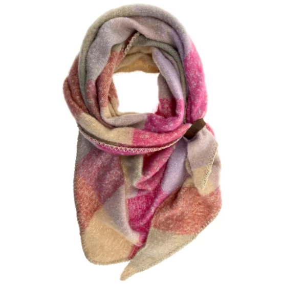 ΄Ομορφο τριγωνικό κασκόλ με καρό σχέδιο. Πολύ απαλό και ζεστό για τις κρύες μέρες. Η δερμάτινη λεπτομέρεια σας βοηθάει να το στερεώσετε καλύτερα γύρω από το λαιμό. Οι απαλές του αποχρώσεις συνδυάζονται εύκολα με πολλές ενδυματολογικές επιλογές.