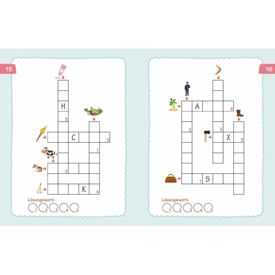 In diesem Buch warten viele kniffige Kreuzworträtsel darauf, von dir gelöst zu werden. Die Rätsel mit vielen Bildern machen Spass und helfen dir dabei, deinen Wortschatz zu erweitern!