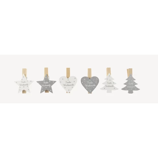Ξύλινα διακοσμητικά μανταλάκια σε λευκό και ασημένιο χρώμα για την χριστουγεννιάτικη διακόσμηση των δώρων ή του δέντρου