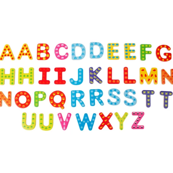 Komm, wir lernen das ABC! Aus wunderschön bemaltem Holz mit rückseitiger Magnet-Beschichtung laden die kunterbunten Buchstaben ein, erste Wörter zu schreiben. 37 Teile, 17x15x5cm