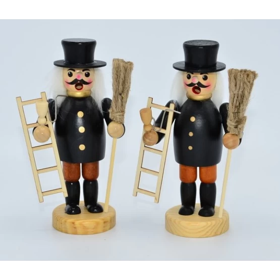 Ξύλινη φιγούρα παραδοσιακού καπνοδοχοκαθαριστή με σκούπα και μικρή σκάλα. Υπάρχει υποδοχή για αρωματικό καρβουνάκι.