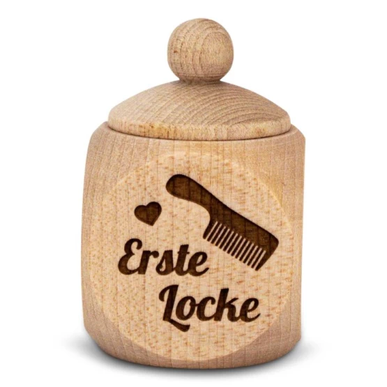 Ξύλινο χειροποίητο μικρό βάζο με βιδωτό καπάκι κατασκευασμένο από ακατέργαστο ξύλο αλπικής πεύκης. Ιδιαίτερο δωράκι στη γέννηση ή και στην βάπτιση για να φυλάξουμε ως ενθύμιο τα πρώτα του μαλλάκια.