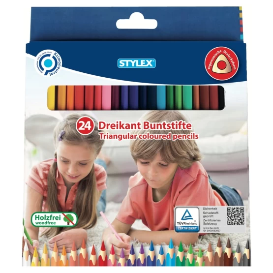 Dreikant Buntstifte, holzfrei, lackiert, 24 Stück in Faltschachtel