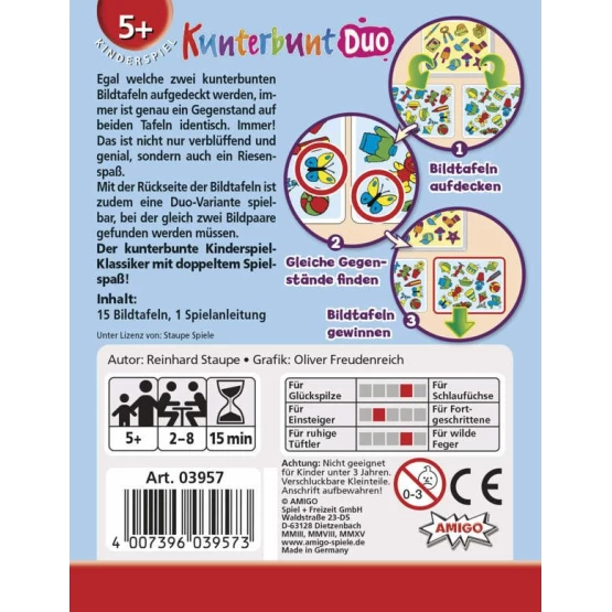 Προσέξτε και κρατήστε τα μάτια σας ανοιχτά , όλα τα μοτίβα στις κάρτες είναι όμοια εκτός από δύο. Αυτός που τα εντοπίζει γρήγορα πάνω στις κάρτες κερδίζει!Για 2-8 παίκτες Διάρκεια: 15 λεπτά