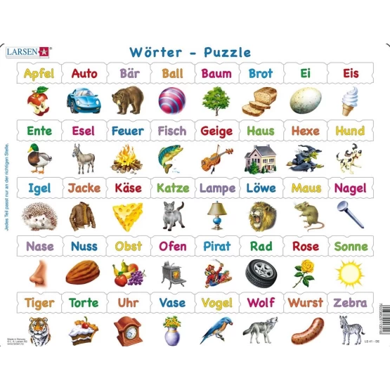 LARSEN Puzzle Wörter - Εκπαιδευτικό παζλ με γερμανικές λέξεις, 36x28 cm