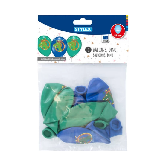Luftballons Dinosaurier, 6er Beutel, Rundballons, 2 verschiedene Farben sortiert, Heliumgeeignet,
