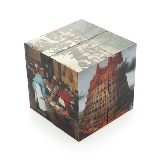 Αυτός ο αναδιπλούμενος κύβος περιέχει πολλές εικόνες των έργων του Μπρούγκελ, συμπεριλαμβανομένων των Παιδικών Παιχνιδιών, των Κυνηγών στο Χιόνι και του Πύργου της Βαβέλ. Ο αναδιπλούμενος κύβος είναι ένας διασκεδαστικός τρόπος για να ανακαλύψετε περισσότερα από τα έργα του!
