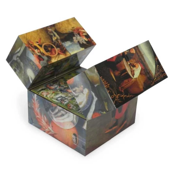 Ένας αναδιπλούμενος κύβος με τα πιο διάσημα αριστουργήματα του Jheronimus Bosch: με εικόνες στο εσωτερικό και στο εξωτερικό. Αυτός ο μαγικός αναδιπλούμενος κύβος είναι ένα έξυπνο και συναρπαστικό αντικείμενο.
