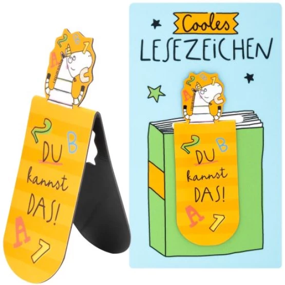 Eine kleine Vorfreude auf die Schule und das Lesen bereitet dieses witzige Lesezeichen. Es ist magnetisch und heftet sich an jede Buchseite, damit man immer weiß, wo man war. Es ist das perfekte kleine Geschenk für die Schultüte und macht den Schulanfang zu etwas ganz besonderem.