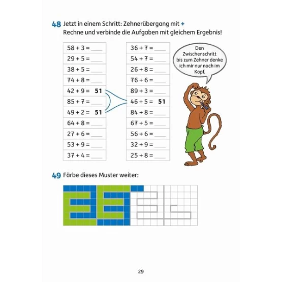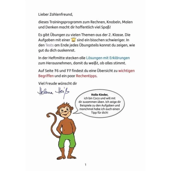 Ihr Kind gewinnt dann Selbstvertrauen, wenn es in der Schule stolze Erfolgsmomente sammelt. Daher gibt es keine bessere Vorbereitung als zuhause lehrplannah zu üben. Genau das liefert dieses Übungsheft: Coco das Äffchen führt die Kinder durch liebevoll illustrierte Rechenaufgaben, die den gesamten relevanten Stoff abdecken.