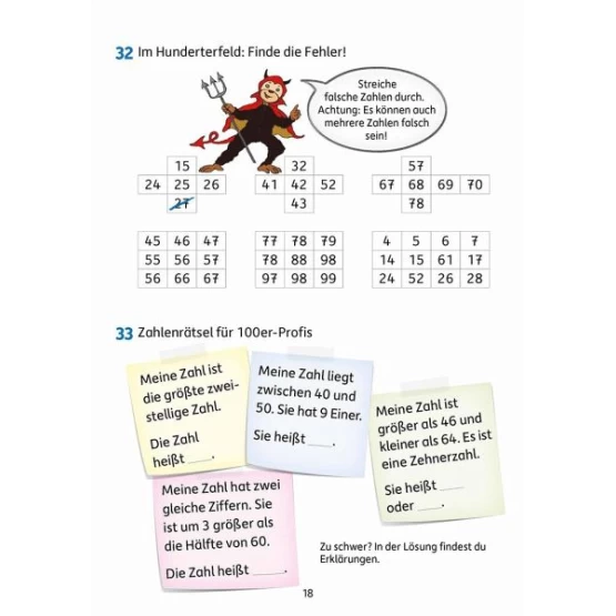 Durch das Heft können Sie sehen, wo Ihr Kind wirklich steht und wie viel Unterstützung es von Ihnen benötigt. Der herausnehmbare Lösungsteil enthält vollständige Rechenwege, anschauliche Erklärungen und bietet wertvolle Tipps. Mit Hilfe der Punktevergabe am Ende der Aufgaben sehen Sie ganz objektiv, wie sich Ihr Kind entwickelt.