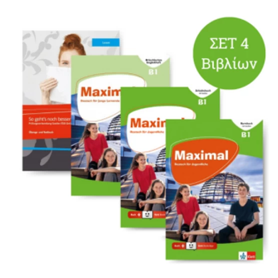 Maximal B1 Power-Pack (Σετ 4 TEM.) - Maximal B1 Kursbuch (176 σελ.), Arbeitsbuch (144 σελ.), Begleitheft (88 σελ.) & So geht's zu Lesen B1 (176 σελ.)