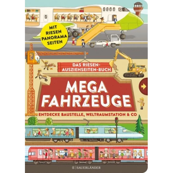 Entdecke die Mega-Fahrzeuge auf riesigen Panorama-Ausziehseiten! Auf der Baustelle arbeiten Bagger, Bohrer und Baumaschinen, die Flugzeuge werfen ihre Triebwerke an. Schnell düsen die Züge über die Schienen; und auf dem Kreuzfahrtschiff ist so viel los wie in einer kleinen Stadt. Rund um die Mega-Fahrzeuge gibt es unzählige Details zu entdecken und viel Spannendes zu lernen. Die riesigen bunten Ausziehseiten laden dabei zum Schauen und Entdecken ein. Auf jeder Seite gibt es zudem ein kniffliges Suchspiel, das langen Beschäftigungsspaß garantiert.