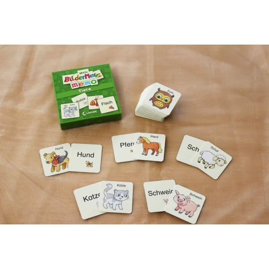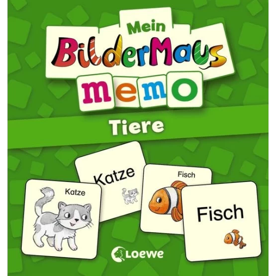 Hier sind Konzentration und Merkfähigkeit gefragt. Jeder Bildkarte mit einem Tier muss die passende Wortkarte mit der Tierbezeichnung zugeordnet werden. Das Kartenspiel in Bildermaus-Optik sieht nicht nur schön aus und macht Spaß, Kinder ab 5 Jahren lernen mit dem Memo ganz nebenbei neue Wörter und den Zusammenhang zwischen Wort und Bild.