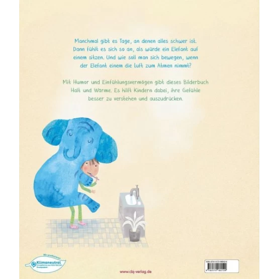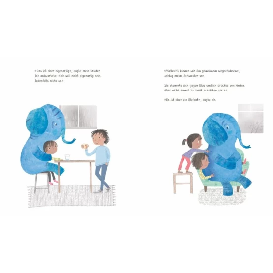 Manchmal gibt es Tage, an denen alles schwer ist. Dann fühlt es sich so an, als würde einem ein Elefant auf der Brust sitzen. Dieser Elefant heißt Blau. Und klar, wie soll man sprechen oder sich bewegen, wenn Blau, der traurige Elefant, einem die Luft zum Atmen nimmt?
