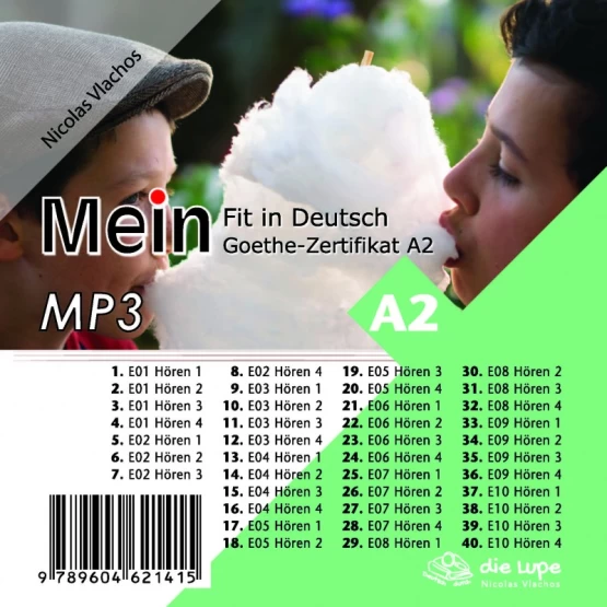 To MP3 του βιβλίου Mein Fit in Deutsch A2 περιλαμβάνει 10 ενότητες ακουστικών ασκήσεων σύμφωνα με τον τύπο των εξετάσεων Goethe-Zertifikat A2: Fit in Deutsch.