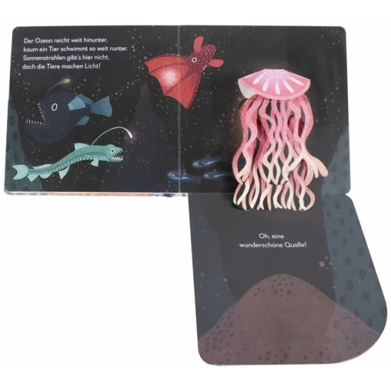 Buckelwale ziehen durch das eiskalte Wasser der Antarktis, Seekühe grasen am Meeresboden und der Clownfisch im Korallenriff fühlt sich in der giftigen Seeanemone zu Hause. Mit diesem Buch kommen schon Kleinkinder ab 2 der Natur richtig nah und können mit den großen Pop-ups unter den Klappen alles ganz genau entdecken. So weckt das Pappbilderbuch spielerisch das Interesse für Naturthemen und zeigt Kindern das faszinierende Leben großer und kleiner Meerestiere.