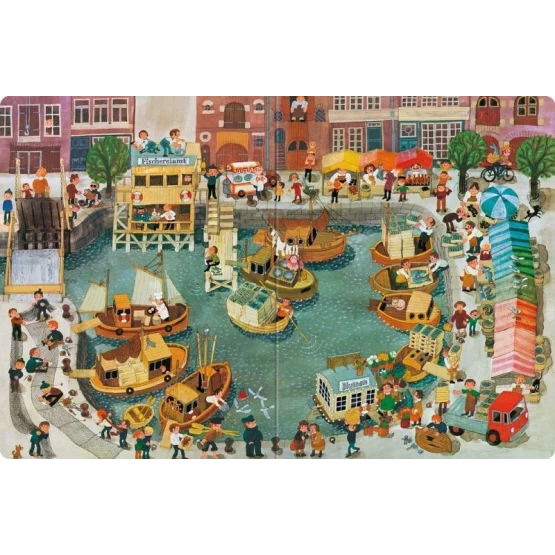 Ali Mitgutsch lädt in diesem Titel wieder dazu ein, genau hinzusehen: Was passiert alles auf dem Wasser, im Hafen und am Strand?