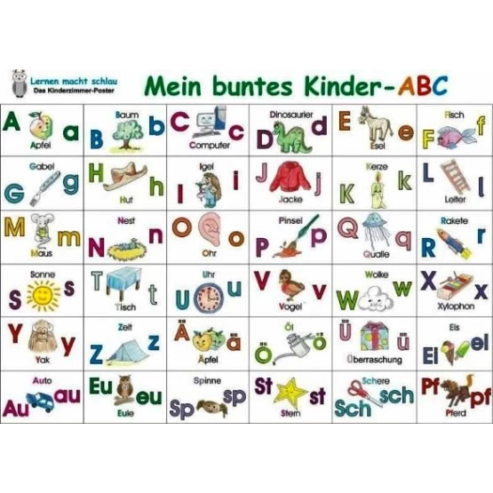 Dieses Poster darf in keinem Kinder- oder Klassen-zimmer fehlen! Kinder lernen das Alphabet und die Umlaute in Groß- und Kleinbuchstaben anhand dieser Anlauttabelle im Posterformat kennen. Die kindgerechten Illustrationen unterstützen auf spielerische Weise den Lernprozess