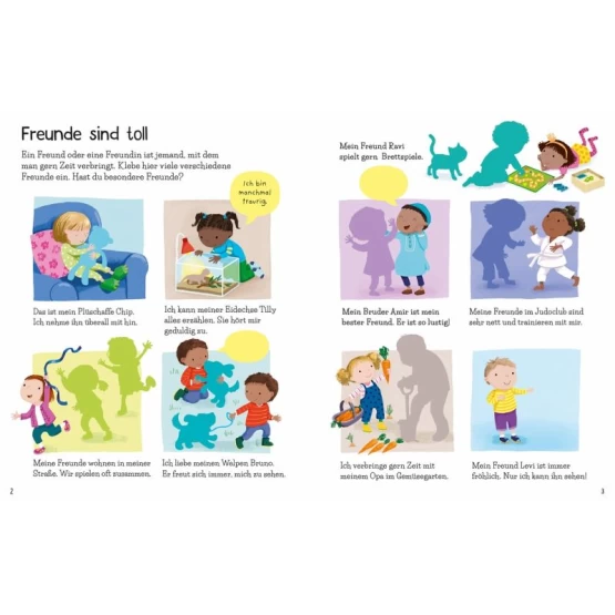Gestalte die Szenen in diesem Buch mit über 150 bunten Stickern und entdecke, was man alles mit Freunden erleben kann. Ob im Park, in der Schule oder zu Hause - zusammen macht fast alles mehr Spaß!