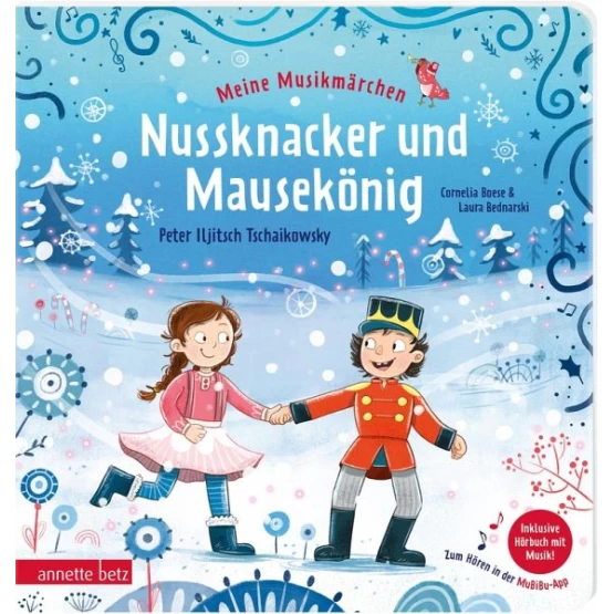 E.T.A. Hoffmanns Nussknacker und Mausekönig als Einstieg in die Welt der klassischen MusikDas bekannte Kunstmärchen, nacherzählt in Reimen und illustriert von Laura BednarskiEin Pappbilderbuch zur musikalischen Früherziehung in Kita, Musikunterricht und zu HauseEingesprochen von Josefine Preuß und untermalt mit fröhlicher Musik, in der MuBiBu-App erhältlichMusik und Märchen für die Jüngsten: die Pappbilderbuchreihe aus dem annette betz Verlag